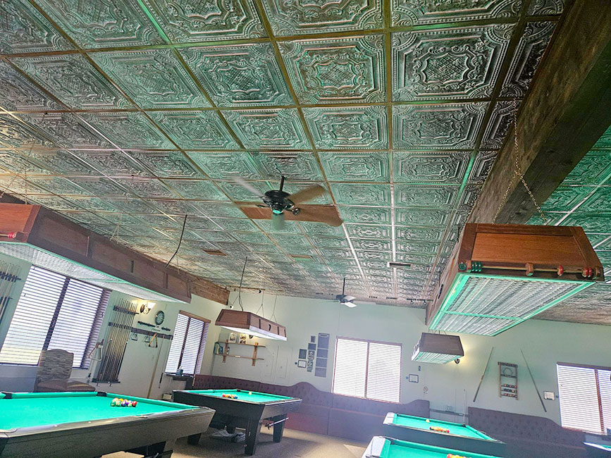 “It was super simple and absolutely everyone is impressed. It changed our Billiard Hall into a really special place with abundant ambiance. Decorative Ceiling Tile was absolutely great to work with, and they had the best selection. They gave us better pricing than anywhere else, and we looked around. Thank you, Decorative Ceiling Tile! We are very happy with the tiles and the service from Aly!”