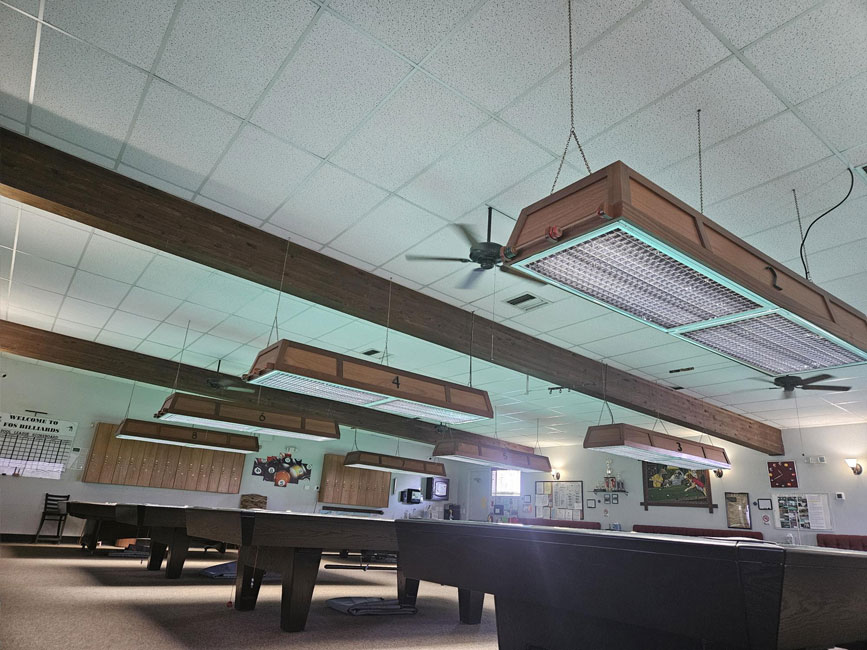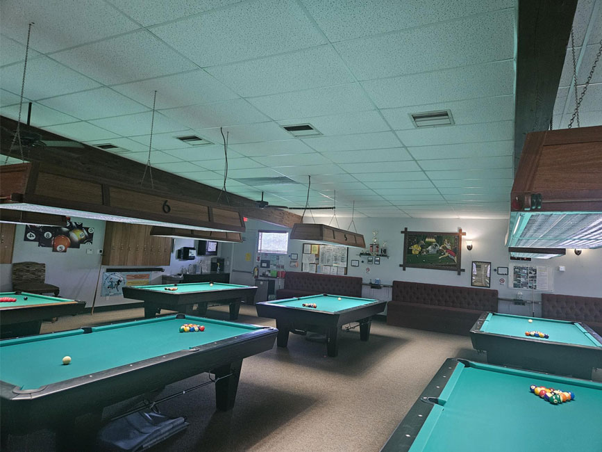 The FOS Billiard Club, originally a traditional billiard hall, underwent a stunning transformation into what is now referred to as a Billiard Parlor. Spanning approximately 3,000 square feet, the renovation focused on elevating the atmosphere with new ceiling treatments that dramatically improved the room’s character and ambiance.