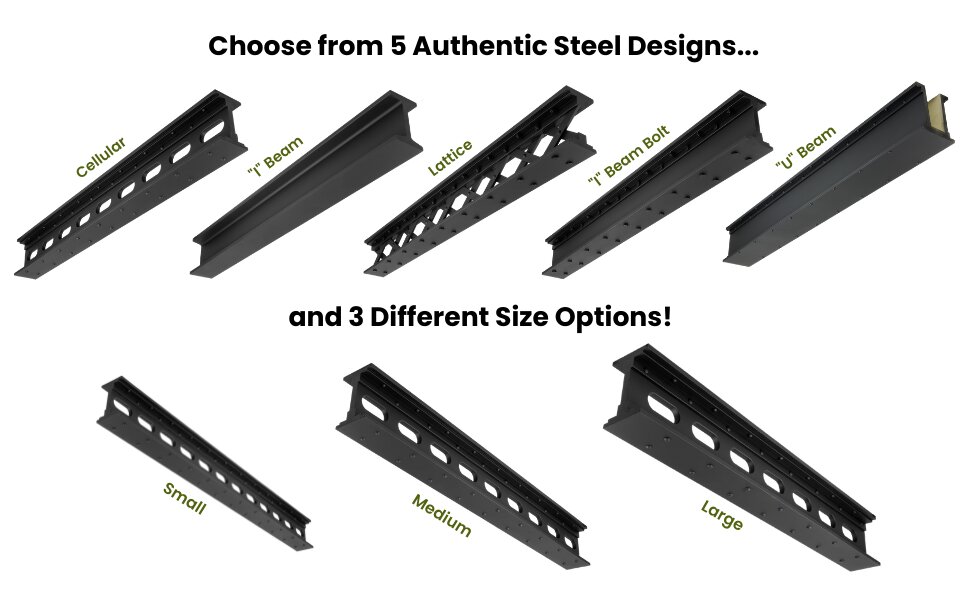 The ForgeCraft Industrial Faux Steel Beam collection is a versatile line of decorative polyurethane beams designed to replicate the rugged appearance of heavy-duty structural steel. This product family includes five unique styles-U-Beam, I-Beam with Bolts, I-Beam Smooth, I-Beam Cellular, and I-Beam Lattice (X-Brace)-each crafted to complement industrial-themed spaces in commercial, residential, and stage or retail environments. Every style is available in multiple sizes and lengths, offering a wide range of design possibilities and flexible integration across projects. The beams are factory-painted in a matte black finish to mimic the look of aged or powder-coated steel, while the lightweight polyurethane material allows for easier installation and handling. Visual features such as bolt accents, smooth or perforated webs, and decorative lattice detailing provide varied aesthetics to suit different design goals. Consistent finishes and proportions across the collection ensure cohesion when combining styles. The ForgeCraft line offers a bold industrial aesthetic without the weight, cost, or complexity of real steel, making it an ideal choice for impactful yet practical design solutions.