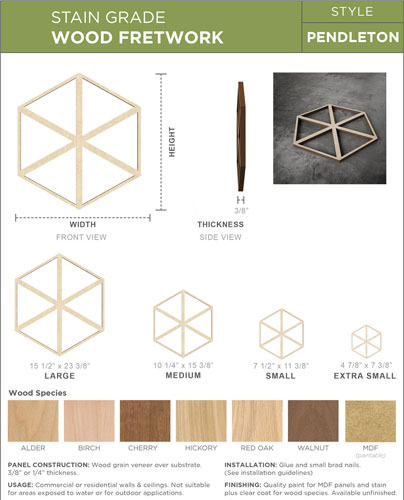 Available in paint-grade, oak, cherry, alder, walnut, hickory, and birch allowing for great strength and durable usage. The natural wood tones evoke luxury and sophistication in any space. You can leave your design mark with unique and inspiring effects on your walls, cabinetry, ceilings and more. Our easy-to-install wood panels can turn a room into a work of art in no time at all. Our distinctive wood fretwork panels add instant value to your home and stand apart from everything else on the market.