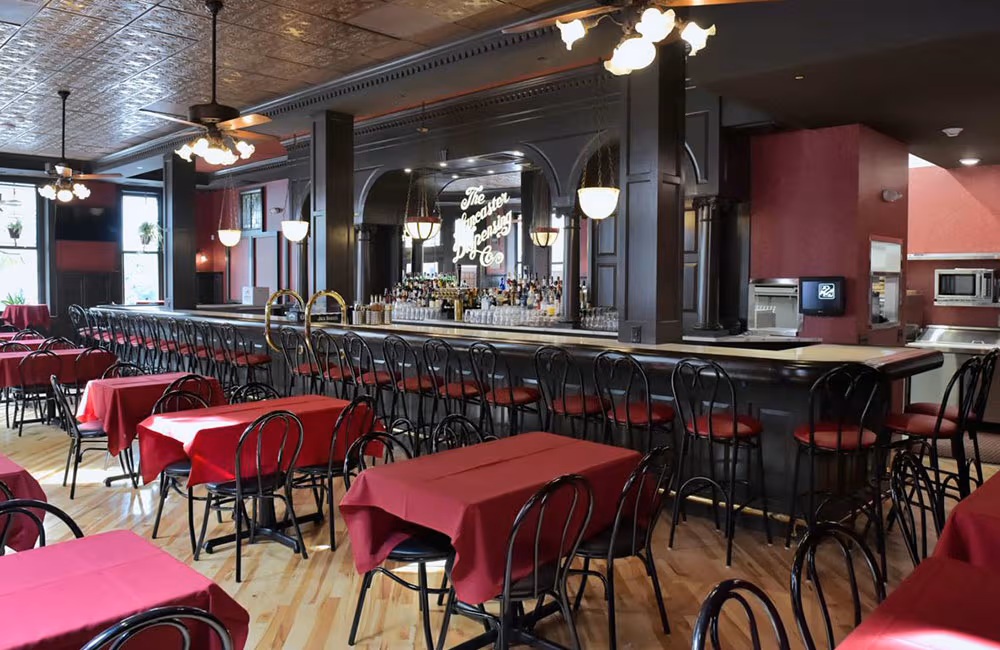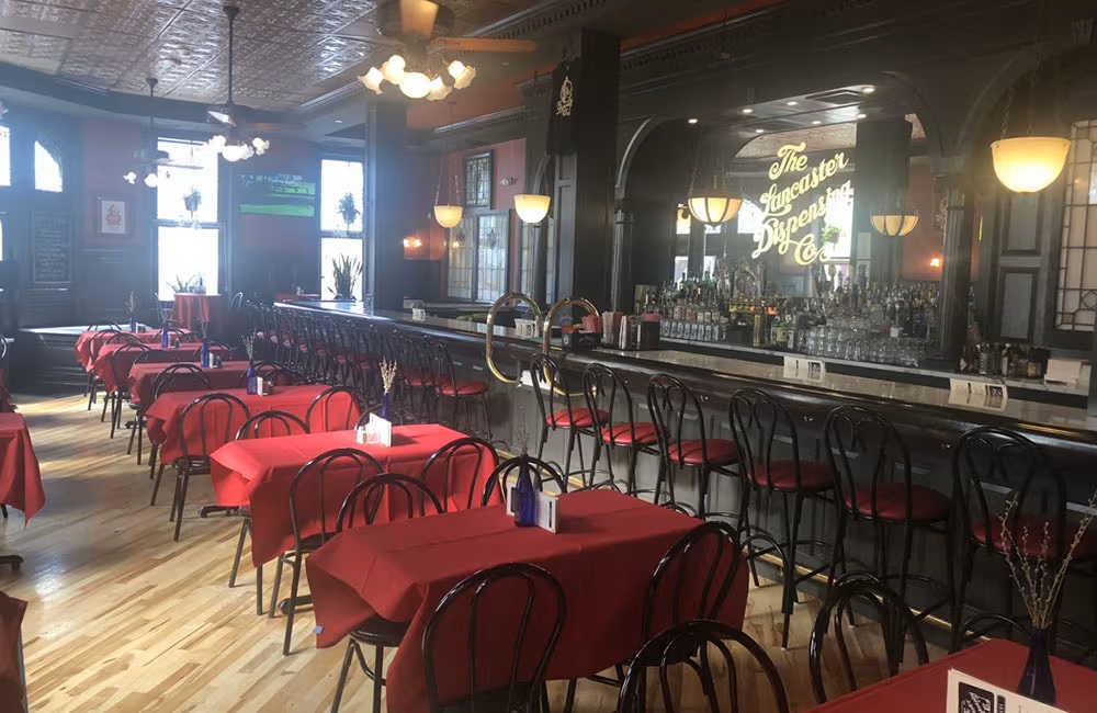 Space suffered acoustically from both high reverberation time and high levels of background noise; owner trying to upgrade the look of the space.