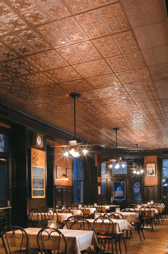 Installation of extra microperforated acoustical MetalWorks Tin Ceiling panels backed with a fiberglass infill, reduced reverberation time by 44% and lowered background noise level up to 7 decibels.
