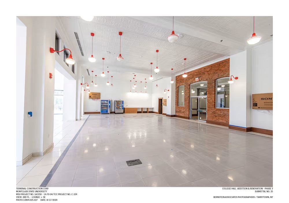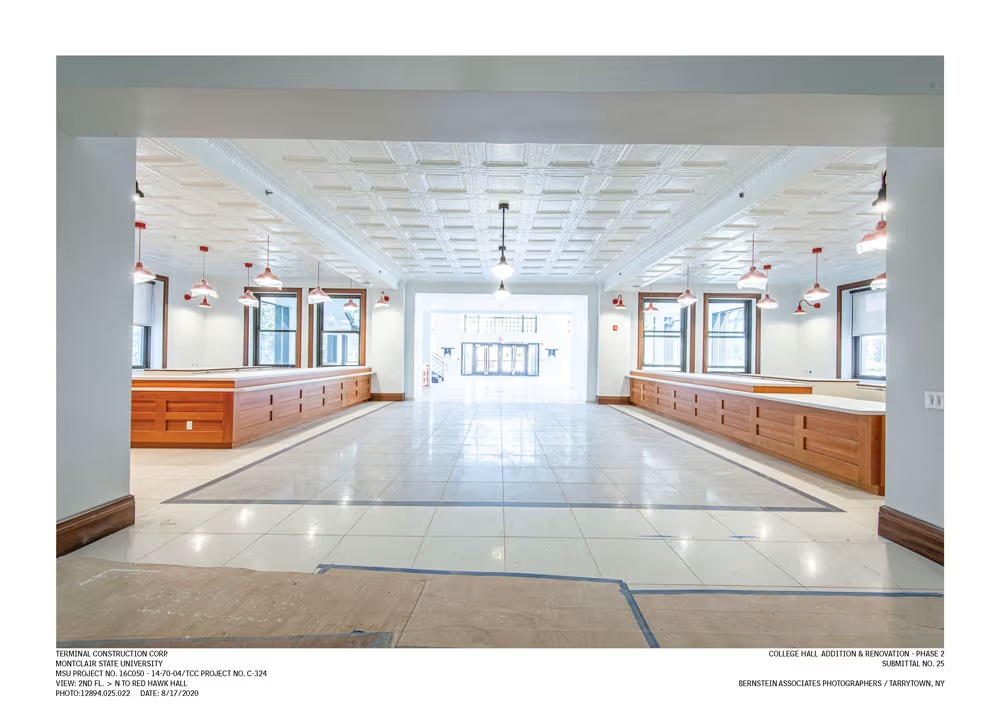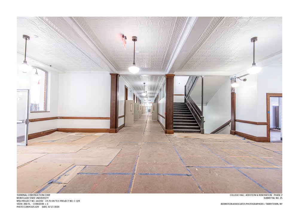 In October 2019, Decorative Ceiling Tiles, inc, was contracted by Terminal Construction to replicate 14 patterns of tin ceiling tiles, moldings, and cornices to restore a ceiling at Montclair State University in New Jersey.