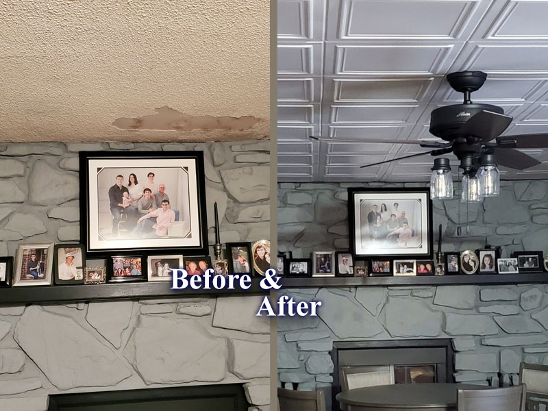 Before and After Pictures of a Covered Popcorn Ceiling