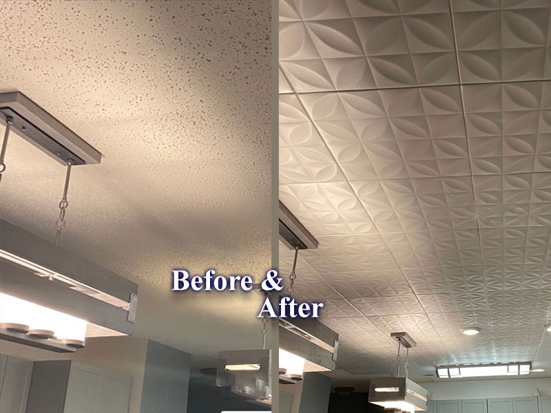 Styrofoam Ceiling Tiles installation Covers Popcorn Ceilings